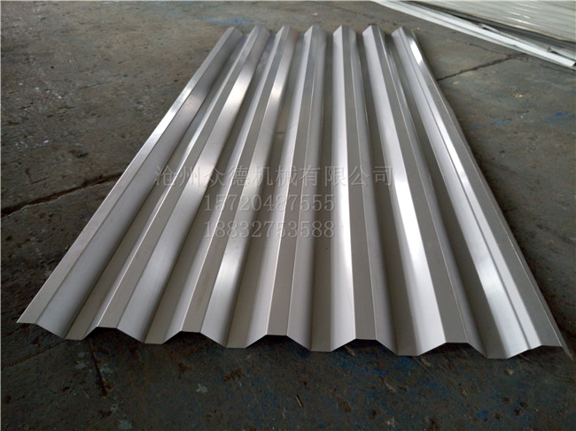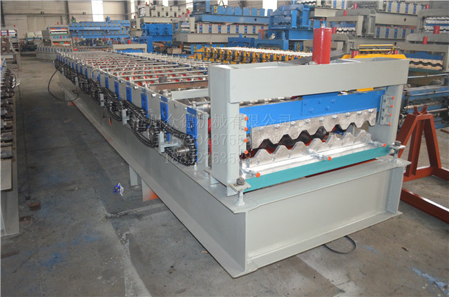 :众德机械 名称:750钢板压型设备 成品用途:用于铺设房屋的屋顶或外墙 电机功率:5.5kw 机器重量:4T 成型排数:14排 生产速度:8-12米/分钟 剪切方式:液压切断 传动方式:链轮+链条传动 外形尺寸:7800*1500*1500mm 加工板材厚度:0.2-0.8mm 可加工材质:彩钢板、不锈钢板 PLC控制器:采用(可自选) 我公司配备有抛丸打砂除锈设备,我厂生产的全部设备均经过抛丸除锈处理,机器在自然环境下生产时,不易生锈,从而延长机械的使用寿命。